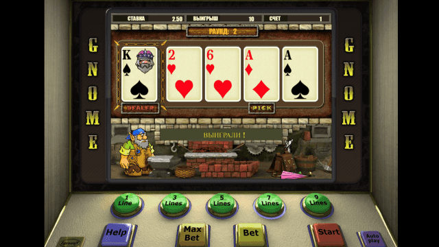 В слоте Gnome игрокам предстоит добывать драгоценности в темном подземелье вместе с главным персонажем — гномом. Особенность игры — двухуровневый бонусный раунд с крупными вознаграждениями.