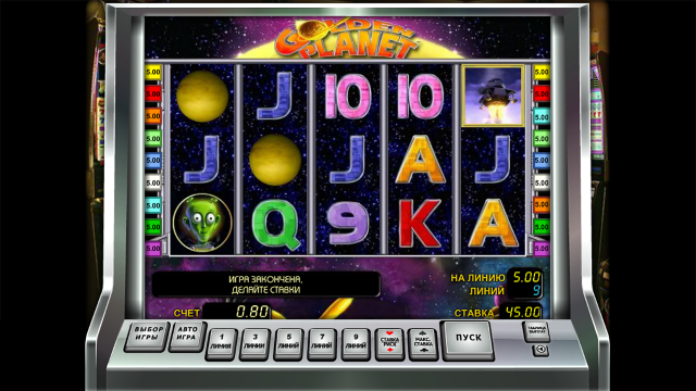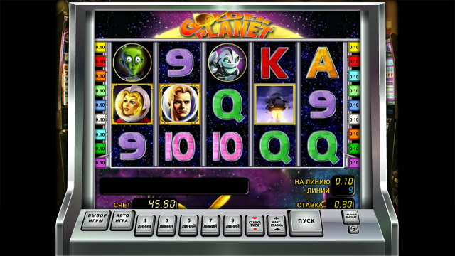 Онлайн-слот Золотая Планета выпущен производителем Novomatic. Дата релиза — февраль 2012 года. Интерфейс симулятора предложен на русском языке. Панель управления содержит несколько клавиш: